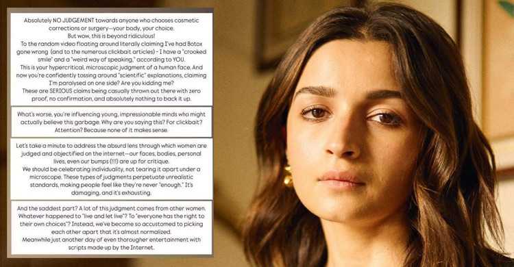এই ধরনের মিথ্যা ও ভিত্তিহীন তথ্যের বিরুদ্ধে সোশ্যাল মিডিয়ায় কড়া ভাষায় প্রতিবাদ জানিয়েছেন আলিয়া। তিনি লিখেছেন, "যারা চেহারায় অস্ত্রোপচার করান, তাদের বিরুদ্ধে আমার কোনো আপত্তি নেই। কিন্তু আমার মতো একজন মানুষের চেহারা নিয়ে এভাবে মিথ্যাচার করা কেন? আমার মুখ নিয়ে এত নোংরা মন্তব্য করা কেন? এসব মিথ্যা তথ্য দিয়ে আপনারা কিভাবে অল্পবয়সীদের প্রভাবিত করছেন?"